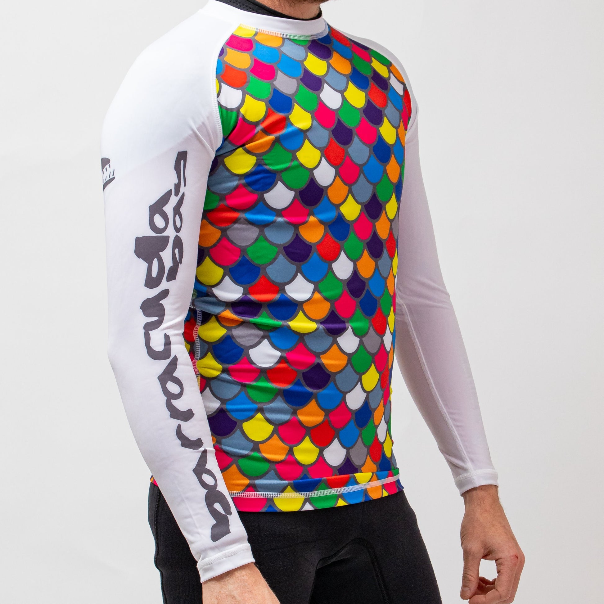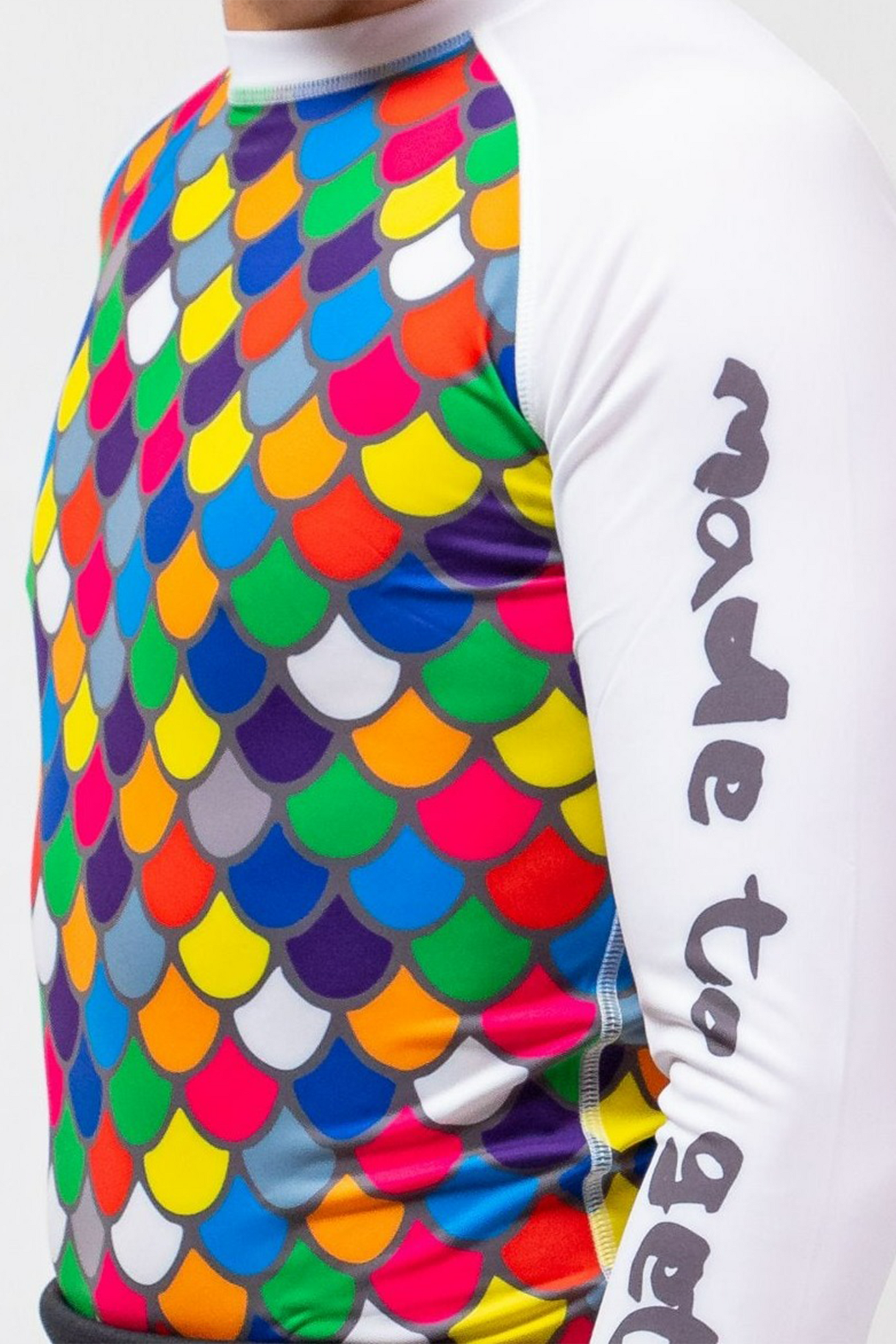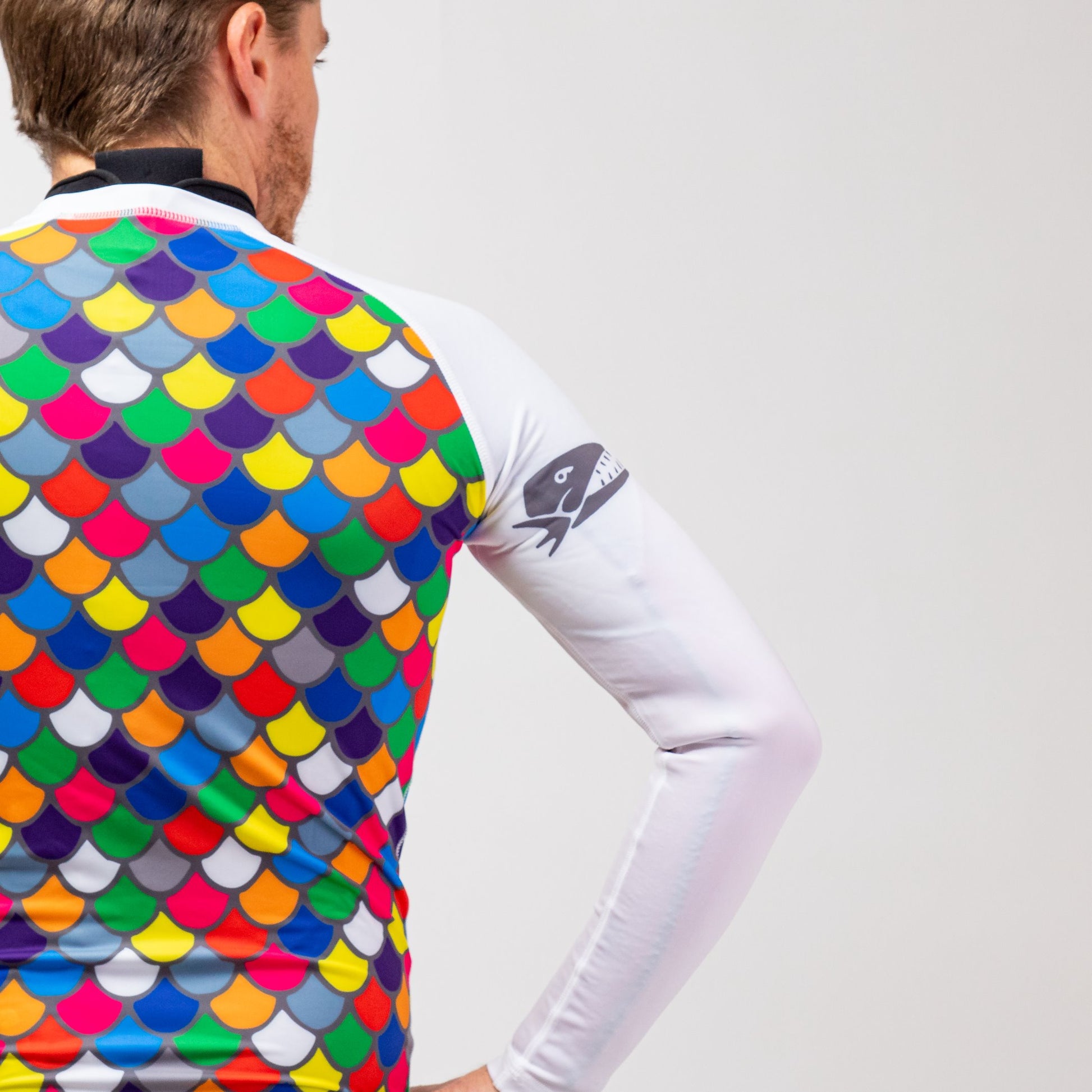 You want colour? Here is colour! Bright scales covering the body, with our brand name and tagline down each arm. Guaranteed to look awesome and stand out from the crowd!